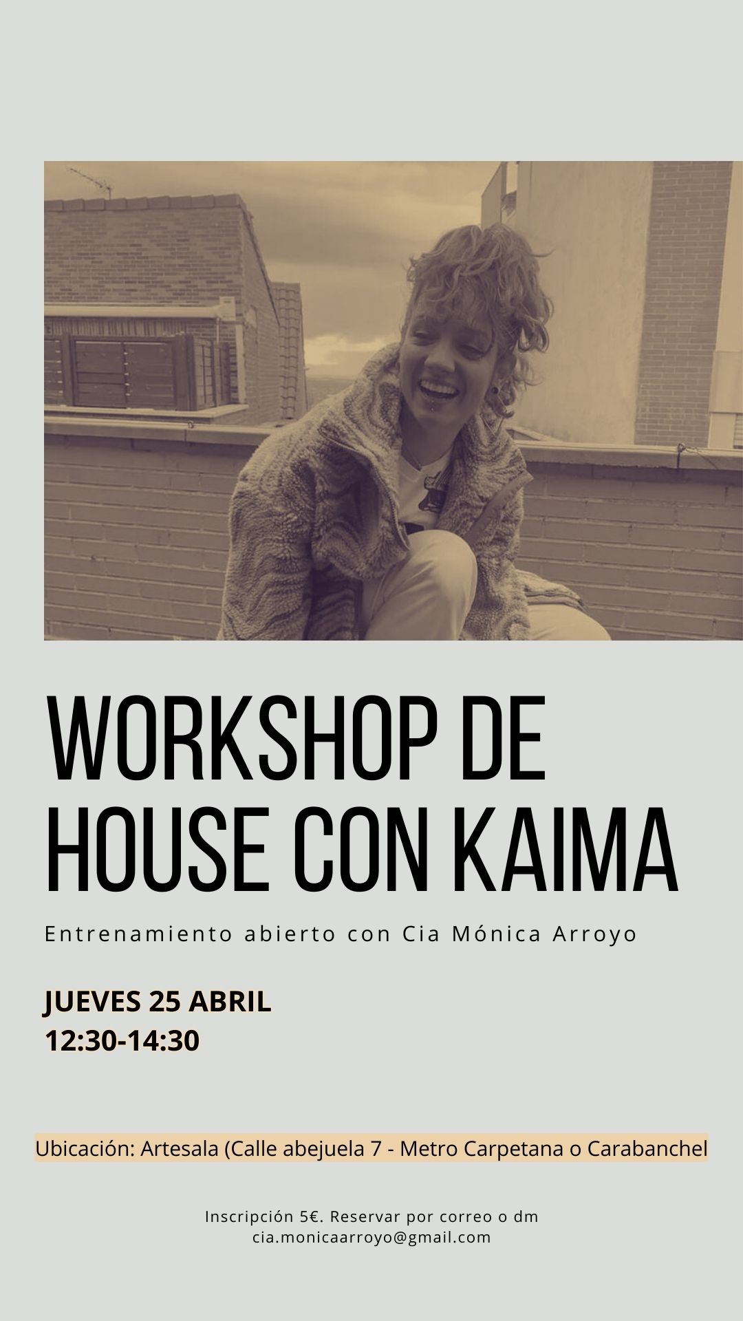 ¿Quieres conocer más a fondo la pieza? ¿Saber acerca de su dramaturgia y a nivel de movimiento? Habrá una parte de introducción a la pieza y a nivel de movimiento y dramaturgia. Después nos centraremos en trabajar las distintas partes de la pieza a nivel coreográfico (partes grupales, house y duos). Si te interesa explorar nuestro movimiento y conocer todo esto, escríbenos. Te esperamos!!!!!!!